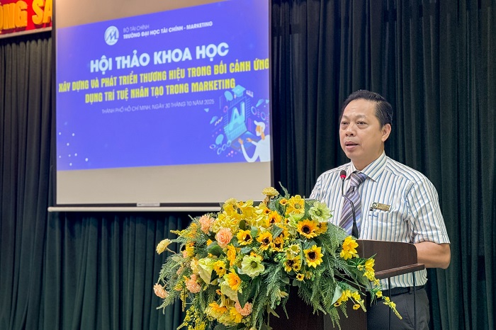 Sáng ngày 30/10/2025, Khoa Marketing tổ chức Hội thảo khoa học “Xây dựng và phát triển thương hiệu trong bối cảnh ứng dụng trí tuệ nhân tạo trong Marketing”. Tham dự hội thảo có TS. Lê Trung Đạo - Phó Hiệu trưởng; PGS.TS Huỳnh Thị Thu Sương - Trưởng phòng Quản lý khoa học, TS. Bảo Trung - Trưởng khoa Marketing cùng các chuyên gia lĩnh vực Marketing, các doanh nghiệp, lãnh đạo khoa/bộ môn thuộc khoa Marketing, giảng viên, nghiên cứu sinh, học viên cao học và sinh viên ngành Marketing.
