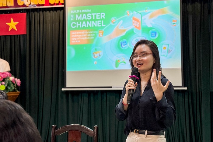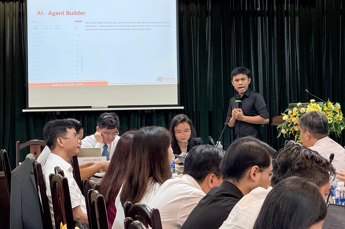 Ông Nguyễn Triệu Phước Sang, Quản lý bộ phận Dịch vụ Digital Marketing - Công ty CP Phát triển công nghệ và truyền thông EQ (EQVN) trình bày tham luận: “Ứng dụng AI trong marketing cho doanh nghiệp: Một số vấn đề và giải pháp”