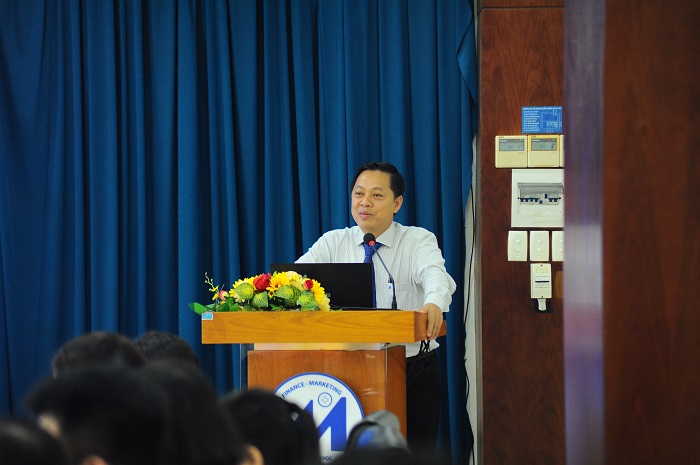 TS. Lượng Văn Quốc – Khoa QTKD trình bày tham luận “Thực trạng công tác tổ chức đào tạo và chất lượng Khóa luận tốt nghiệp, Thực tập cuối khóa của sinh viên Đại học Ngành Quản trị kinh doanh, Trường đại học Tài chính – Marketing”