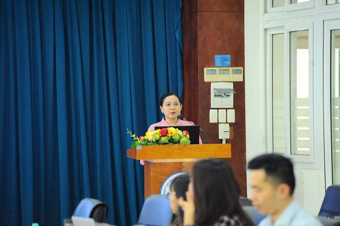 TS. Mai Xuân Đào – Khoa Thương mại và Du lịch trình bày tham luận với chủ đề “Giải pháp nâng cao chất lượng Thực hành nghề nghiệp, Thực tập tốt nghiệp và Khoá luận tốt nghiệp từ thực tiễn áp dụng đối với Ngành Kinh doanh quốc tế tại Khoa Thương mại và du lịch”