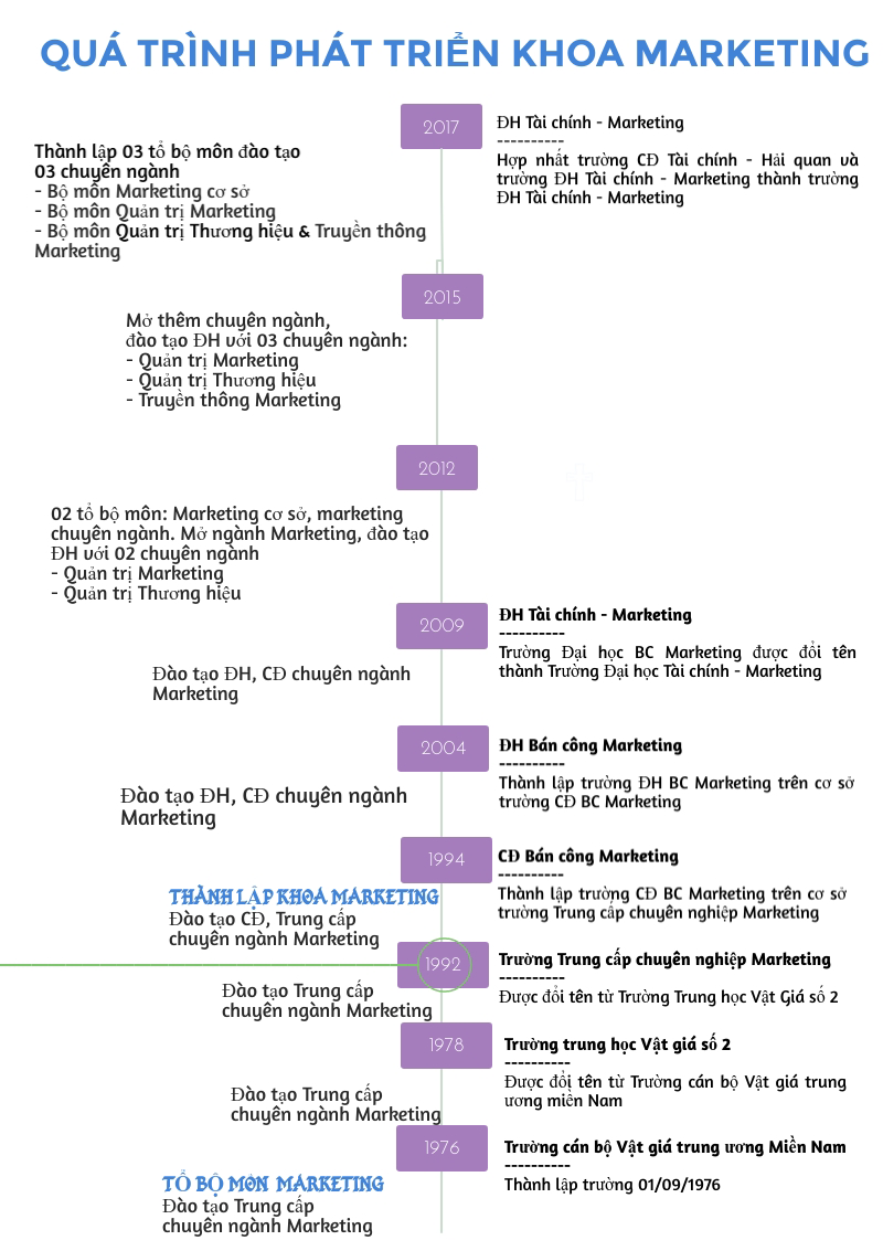 Quá trình hình thành và phát triển của Khoa Marketing, trường ĐH Tài chính - Marketing được tóm tắt qua các mốc thời gian sau: