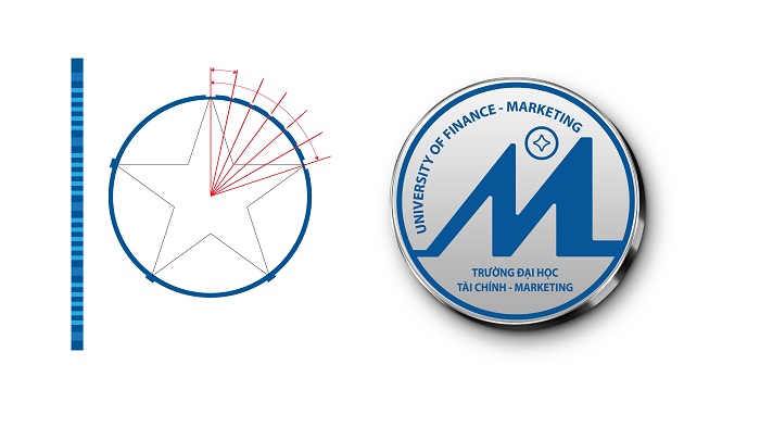 Với nền Logo màu bạc, viền răng cưa xung quanh logo (khi thể hiện qua bản vẽ 3D) chính là đường nét đặc trưng của đồng bạc – là biểu tượng truyền thống, sứ mệnh của ngành Tài chính trong suốt 80 năm qua – đơn vị chủ quản của Trường Đại học Tài chính – Marketing.
