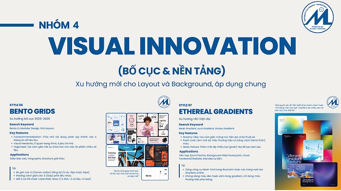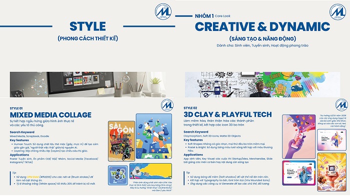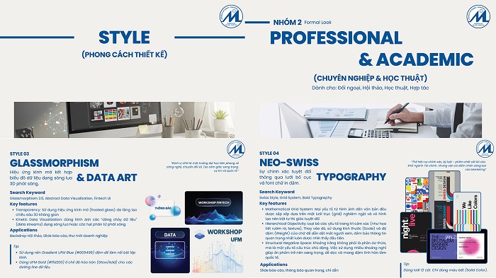 Thứ hai, xu hướng phong cách thiết kế (Style) được phân nhóm linh hoạt theo mục đích sử dụng, bao gồm: phong cách sáng tạo – năng động; phong cách chuyên nghiệp – học thuật; và phong cách chính trị – truyền thống, bảo đảm phù hợp với từng loại hình nội dung và đối tượng truyền thông.